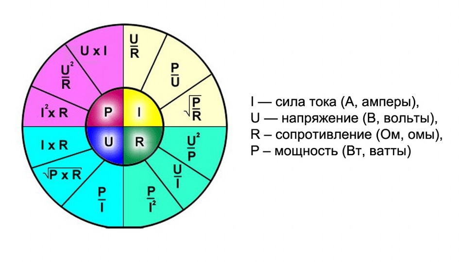 Для подсчета величин используются специальные формулы. После их подсчета останется только вставить их в приведенные выше формулы. Чтобы отыскать электроток, стоит напряжение поделить на проводниковое сопротивление, а чтобы отыскать мощность, необходимо умножить напряжение на токовую силу или же двойное значение силы тока умножить на сопротивление. Также есть возможность поделить двойное значение напряжения на сопротивление.