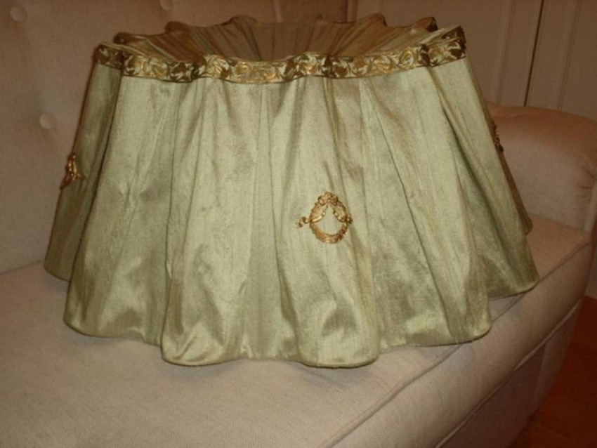 Перед тем, как сшить абажур из плотной ткани, поднесите её к включенному свету и посмотрите, пропускает ли она лучи, достаточно ли вам такого освещения. Не пытайтесь полностью повторить старый светильник, включите воображение для создания креативного чехла. Например, для комнаты девочки можно сделать его в виде юбочки, для мальчика – географической карты, для кухни в виде салфетки с кармашками для столовых приборов.