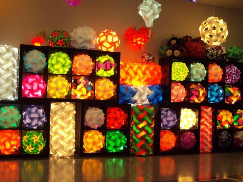 Чтобы выполнить отделку плафона, мастерицы рекомендуют использовать любые вещи, начиная от игрушек и оканчивая бумажными пластиковыми предметами. На фото самодельных абажуров можно ознакомиться с многочисленными идеями современного мастерства декорирования.