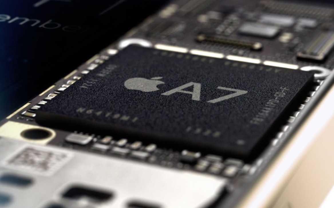 Процессорных ядер у однокристальной системы A7 только два (частота до 1,4 ГГц), но присутствует графический ускоритель PowerVR G6430 с четырьмя кластерами ядер. Быстродействие чипа A7 в процессорозависимых задачах выросло примерно в полтора раза по сравнению с А6, тогда как в различных графических тестах прирост составляет от двух до трех раз.