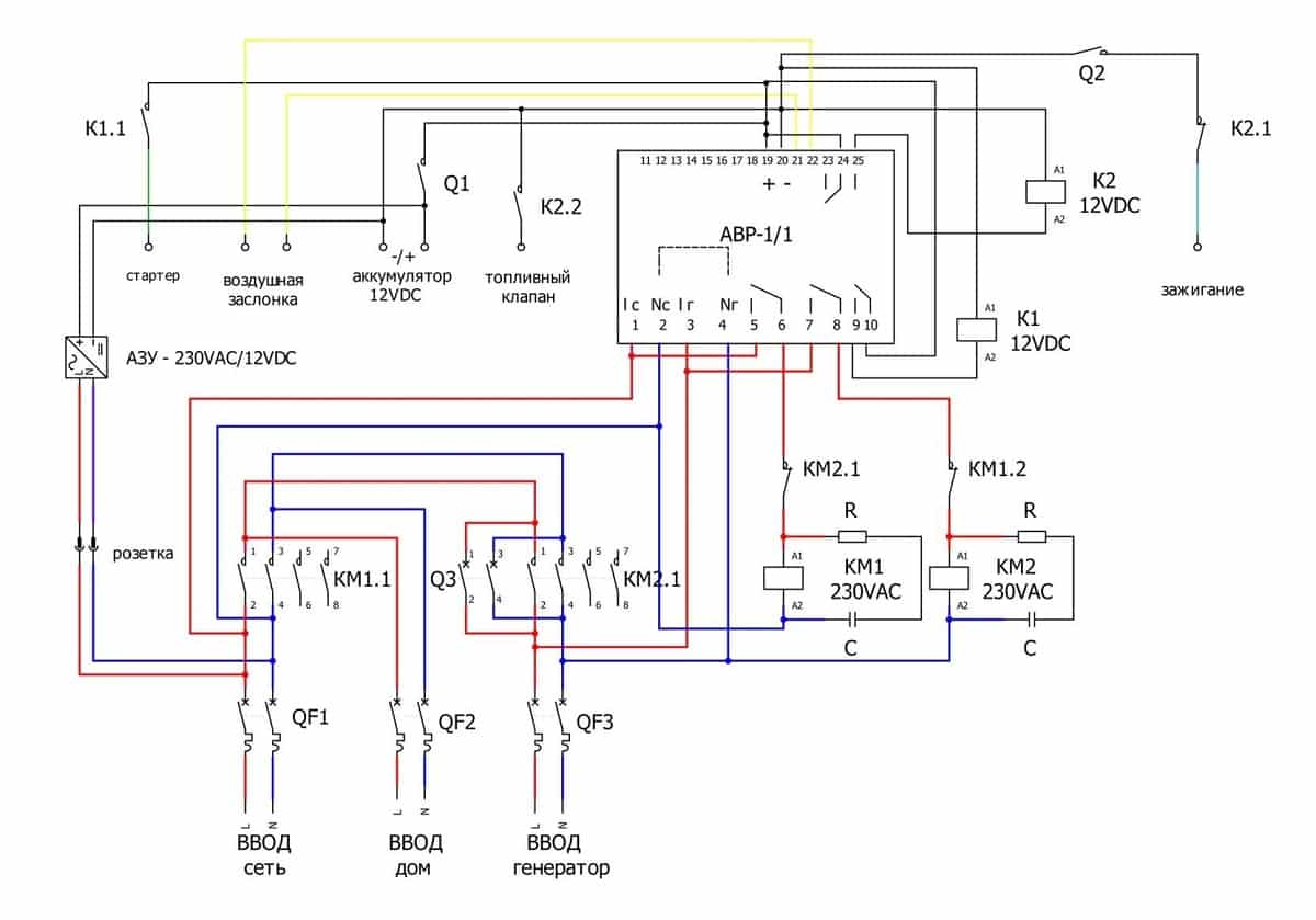 Принципиальная схема подключения АВР для частного дома показана на рис. 7.