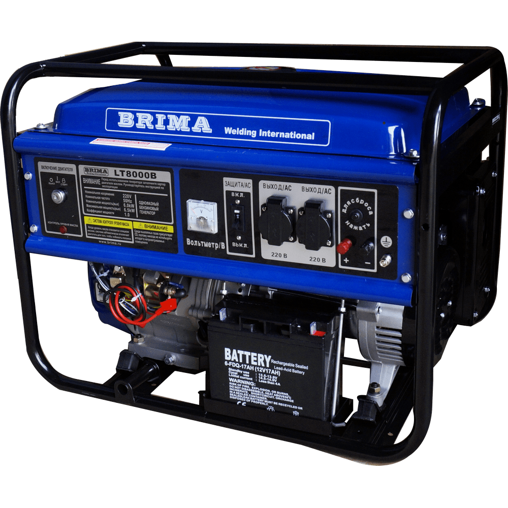 Также для сварки инвертором мы рекомендуем модель LT 8000 B от известного немецкого бренда BRIMA. Его мощность чуть больше, чем у предыдущего генератора — 6 кВт. Но это его номинальная мощность. А максимальная составляет все 6.5 кВт. Однако, помните, что мы не рекомендуем постоянно использовать генератор а пределе его возможностей. Модель LT 8000 B пригодится тем, у кого аппарат выдает до 180 Ампер сварочного тока.