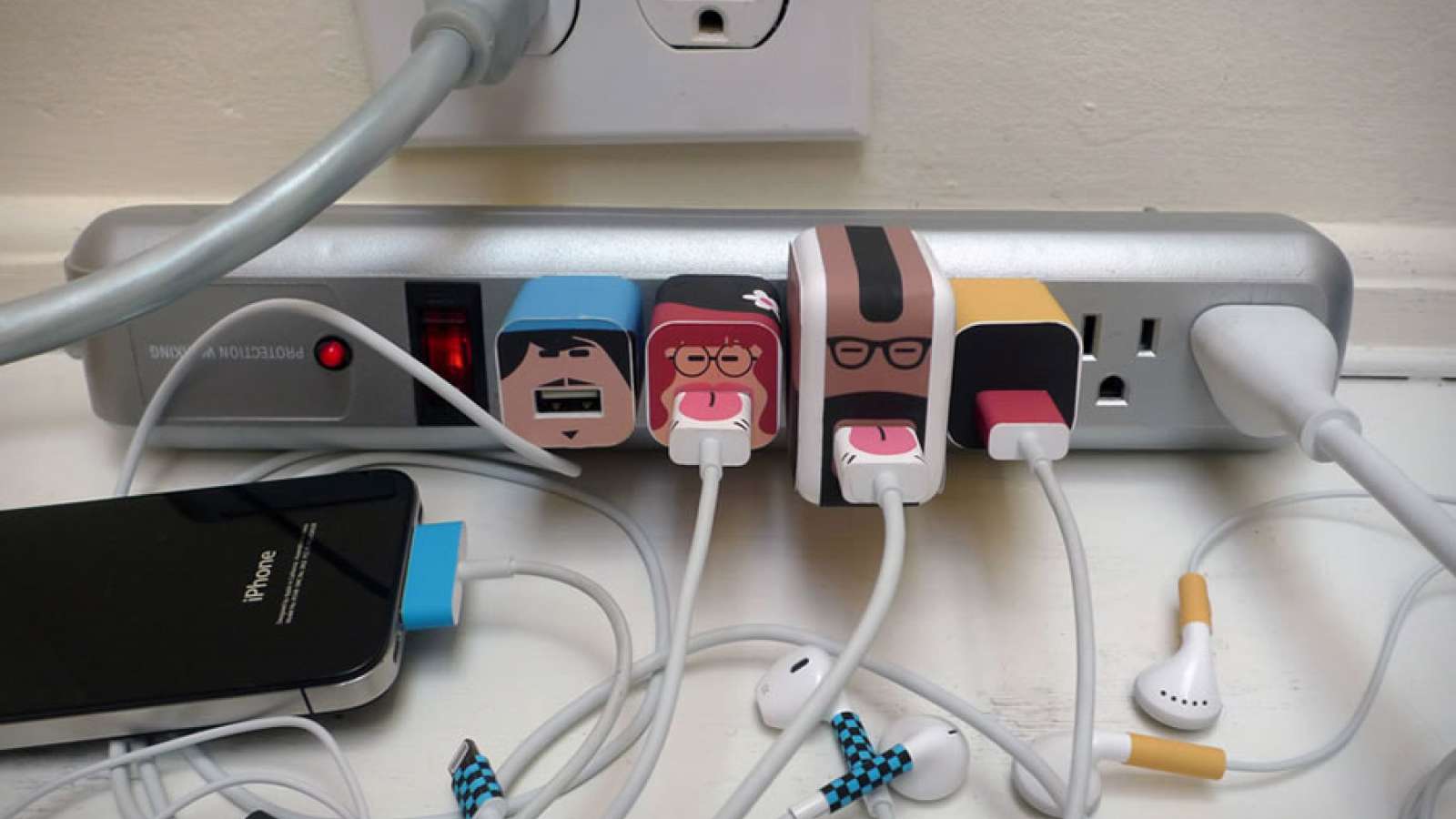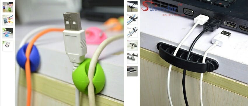 Современному человеку часто приходится заряжать несколько устройств одновременно. Когда все они вставлены в один «тройник» либо применяется «многохвостая» зарядка, с тремя-пятью шнурами для разных устройств, все элементы собираются под одну канцелярскую клипсу, крепятся к любой близлежащей поверхности. Некоторые покупные варианты представляют собой коробки-разделители с четырьмя-шестью фигурными отверстиями, через которые выводятся только «хвостики» зарядок.