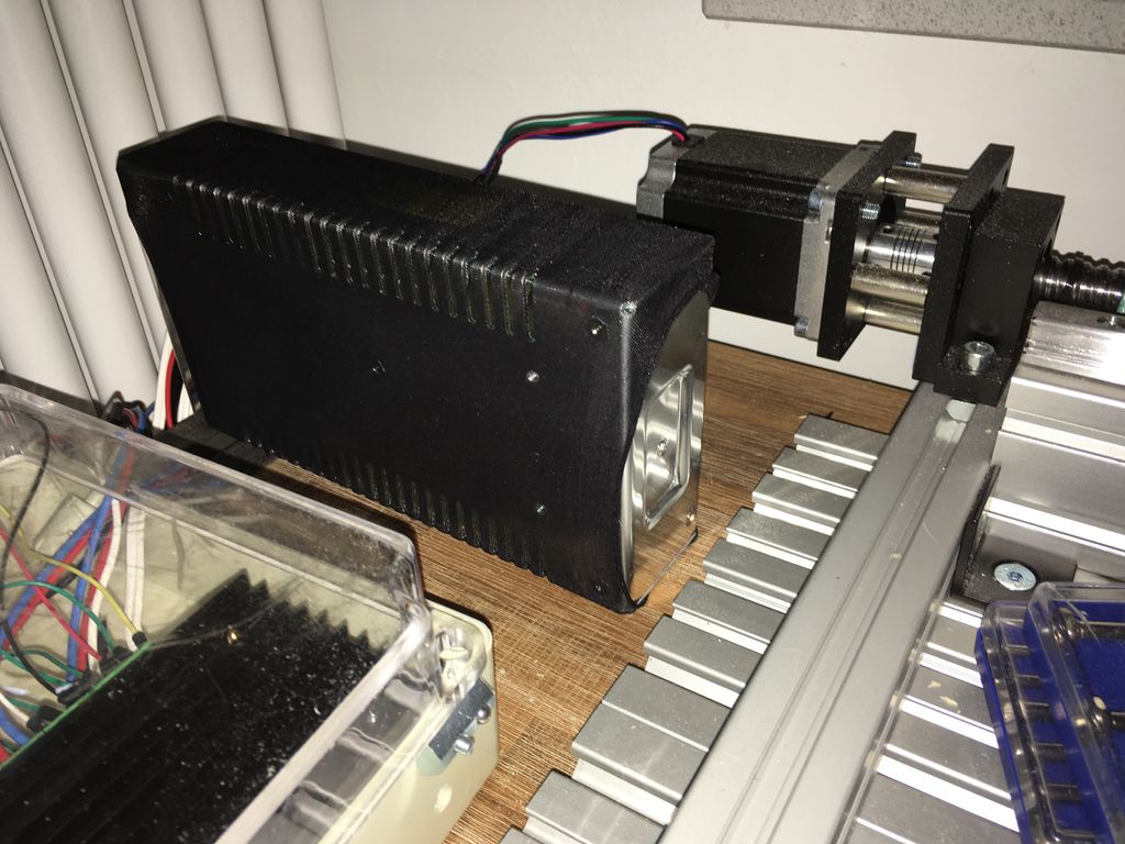 TB6600 — мое окончательное решение. Он полностью закрыт алюминиевым охлаждающим покрытием и прост в настройке. Теперь мои степперы работают по осям X и Y с 2,2А и по оси Z с 2,7А. Я мог поднять до 3А, но поскольку у меня есть закрытая коробка для защиты цепей от алюминиевой пыли, я решил использовать 2,2А, что достаточно для моих нужд и почти не выделяет тепла. Также я не хочу, чтобы степперы уничтожили машину в случае ошибки, когда я даю им слишком много мощности.