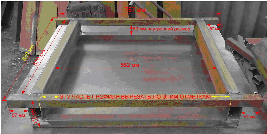 После того как обварен профиль основания, надо поставить два профиля 30х30 сверху и обварить.
