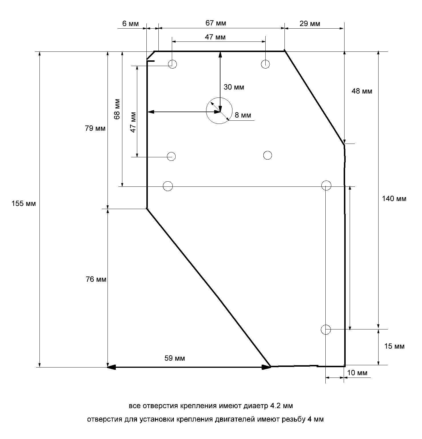 Я вырезал две стальные заготовки, размер которых указан на чертеже в верхней части. Так как обе части одинаковые, я указал размер только на одну заготовку. И теперь на эти пластины я буду устанавливать крепление для шаговых двигателей. Но можно обойтись и без дополнительного переходного крепления. Потому что я для установки двигателей уже изготовил дополнительное крепление, я и буду его использовать. Потому что оно предусматривает возможность установки двигателей двух типов. Так как моём случае установлены два шаговых двигателя на один драйвер (двигатели Nema 17).