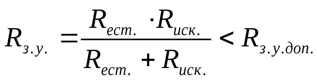 Общее сопротивление заземляющего устройства состоит из сопротивления естественных и искусственных заземлителей: