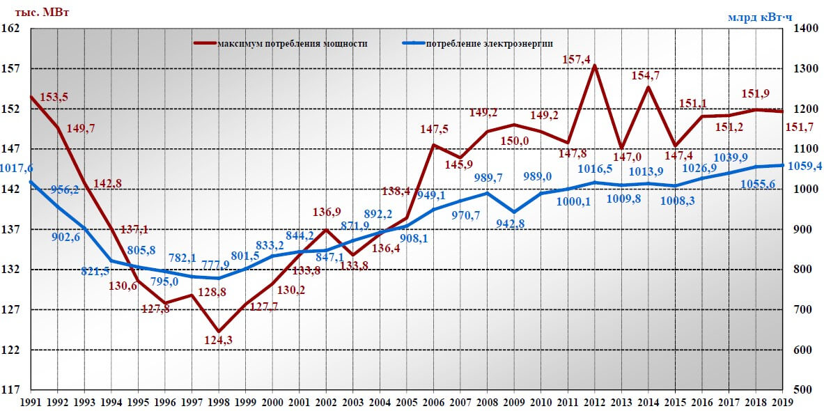 - В 2018 году достиг 1055,6 млрд кВт*ч.