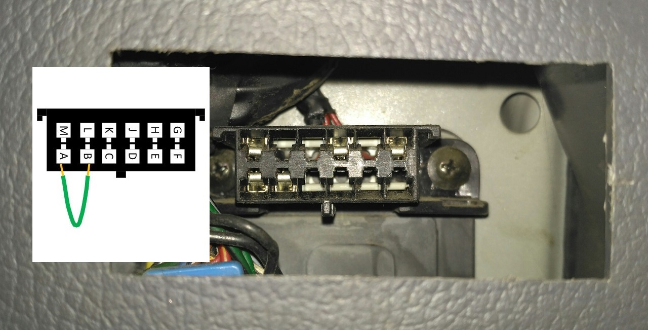 - Закоротите перемычкой гнезда А и В диагностического разъема (см. рис. 9.2].