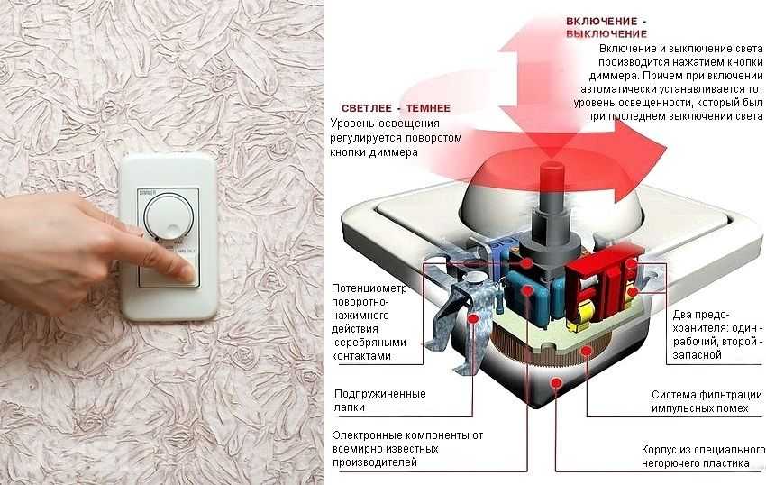 | Поворотный диммер | Предполагает легкое вращение поворотного элемента. |