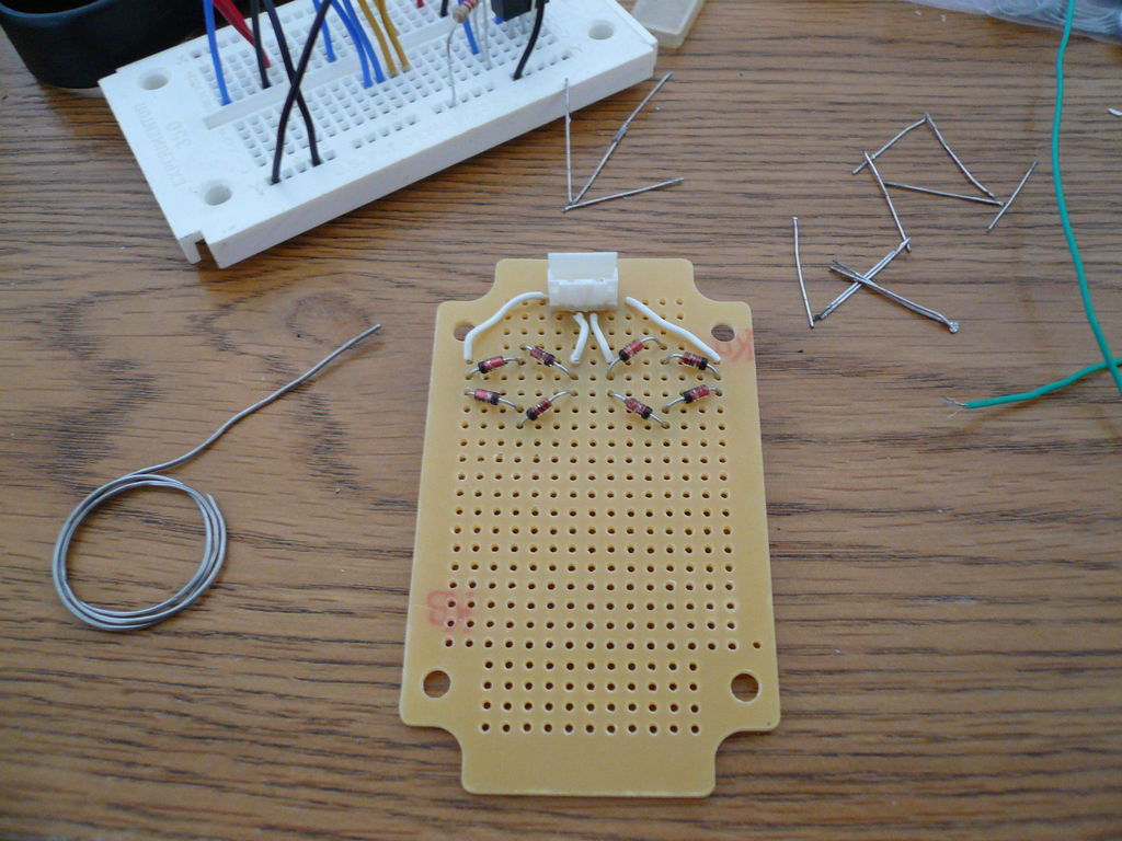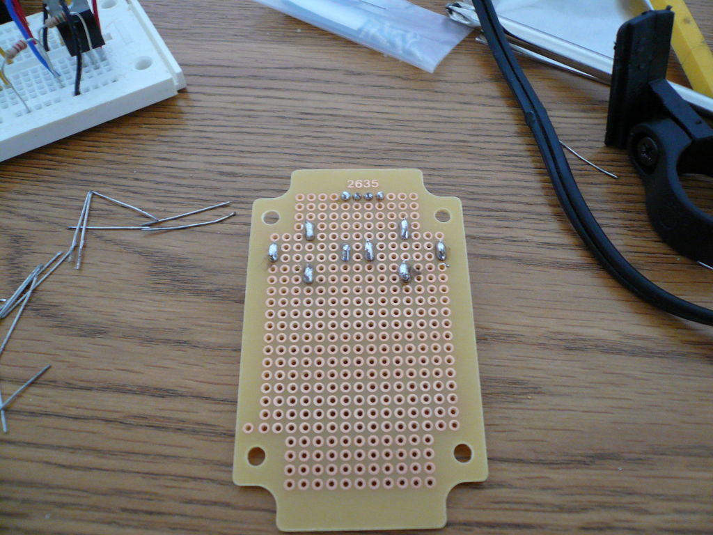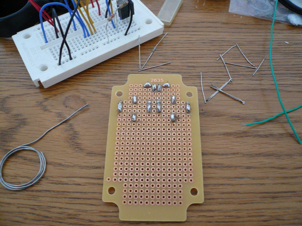 Теперь всё нужно спаять на печатной плате. Чтобы сделать аккуратные соединения, я использовал маленький калибровочный припой. Он быстрее нагревается и обеспечивает лучшее соединение.
