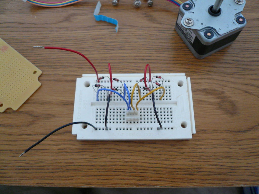 Шаговый двигатель имеет две катушки, и вам необходимо убедиться, что каждая катушка подключена к одному набору диодных групп. Чтобы узнать, какие провода от двигателя подключены к одной и той же катушке, вам просто нужно проверить контакт между проводами. Два провода связаны с первой катушкой, и два со второй катушкой.