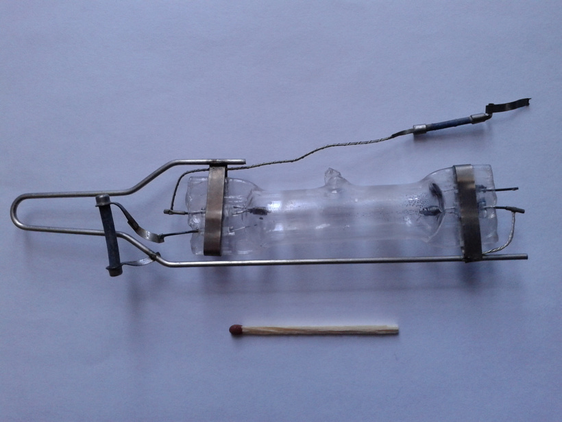 Горелка представляет собой трубку из кварцевого стекла (либо специальной тугоплавкой прозрачной керамики), так как оно термостойкое и пропускает ультрафиолетовое излучение. Внутри находится строго дозированные порции инертного газа. Ультрафиолет вызывает свечение люминофорного слоя. Это самая главная часть — излучатель.
