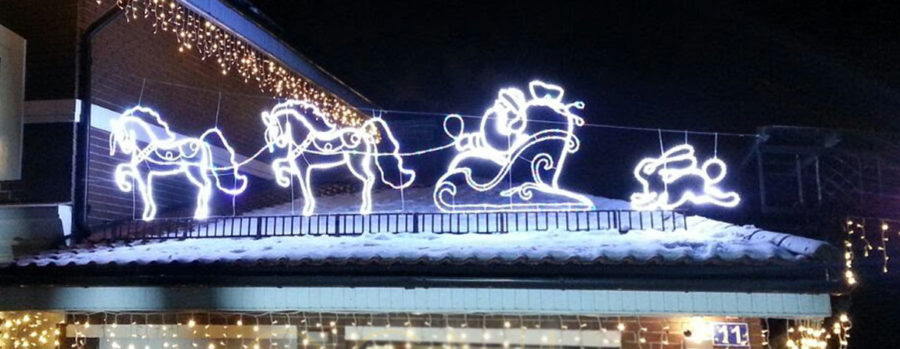 Фигуры из дюралайта могут составлять надписи, к примеру, «С Новым годом!».