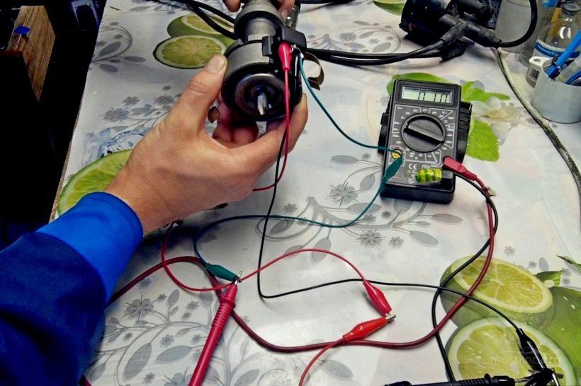минус — к массе. Прибор должен показывать 11.2 В (примерное значение). Проворачиваем