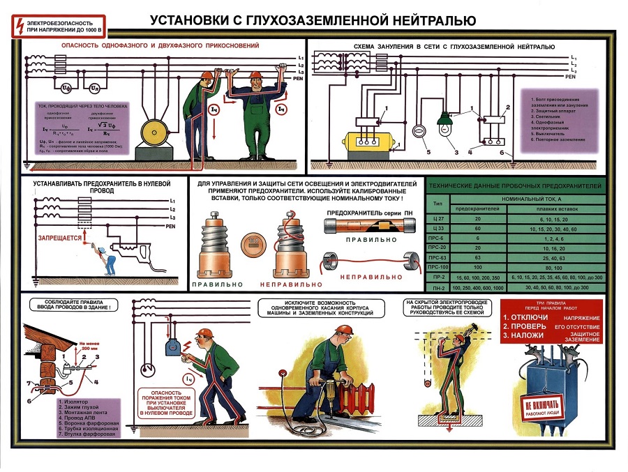 Меры предосторожности при работе в сети с глухозаземленной нейтралью