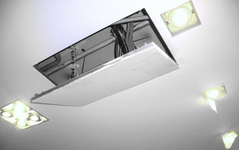Тогда есть смысл вывести ключевые линии в одну распаячную коробку, и поместить ее над люком. Это несколько усложнит монтаж, но при необходимости обеспечит легкий доступ.