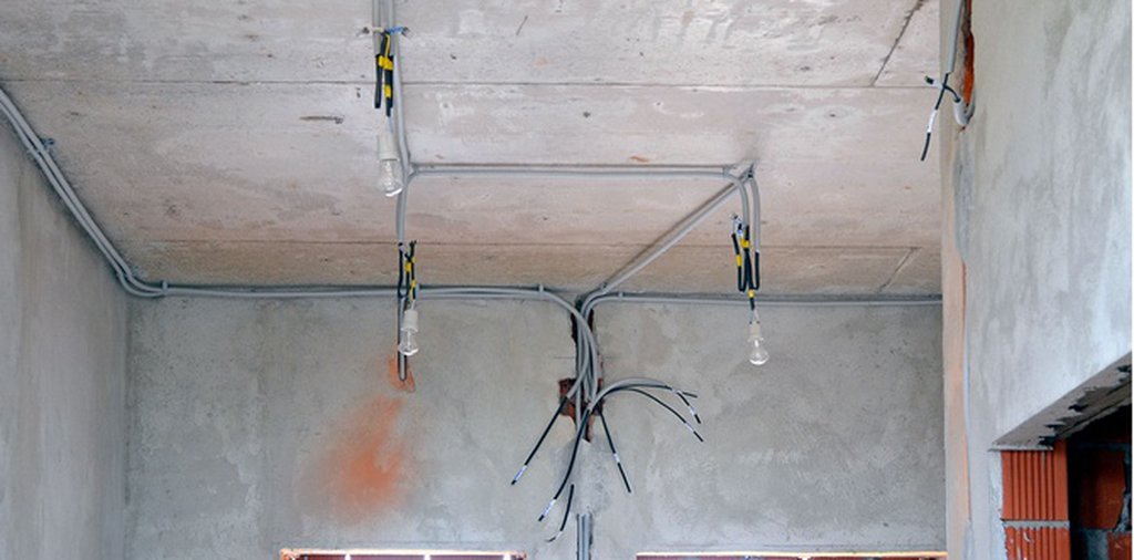Линии освещения, в любом случае прокладываются за натяжным или подвесным потолком, если таковые делать не планируется, то необходимо штробление потолка. А так как, монолит потолков штробить категорически запрещено, нужно нанести на потолок слой штукатурки, который позволит спрятать кабель без порчи монолита. Самостоятельно штробить потолок мы крайне не рекомендуем, так как необходимо знать технологию правильного штробления, чтобы потом весь дом когда-нибудь не рухнул.