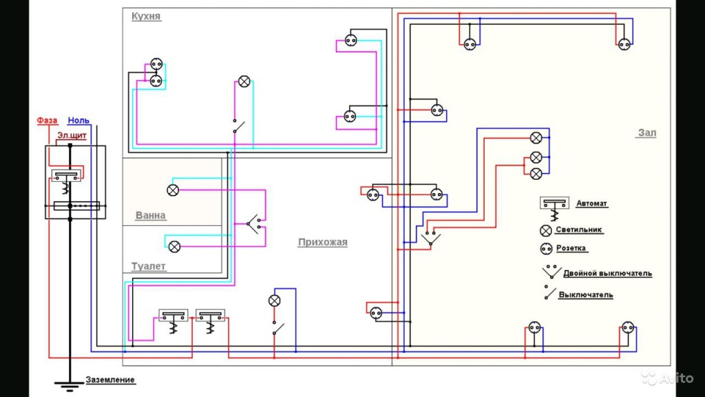 При монтаже электролинии руководствуются типовой схемой для квартиры с одной и двумя комнатами.