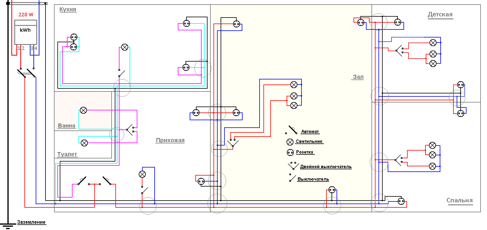 Рис. 1. Типичная схема проводки в однокомнатной квартире