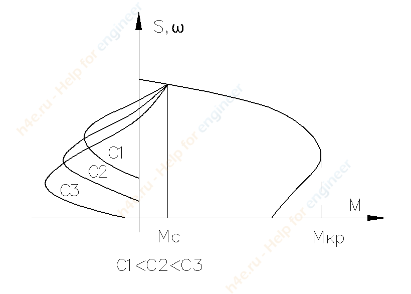 видно, что при пуске, когда S=1, пусковой момент Мп=О. Двигатель