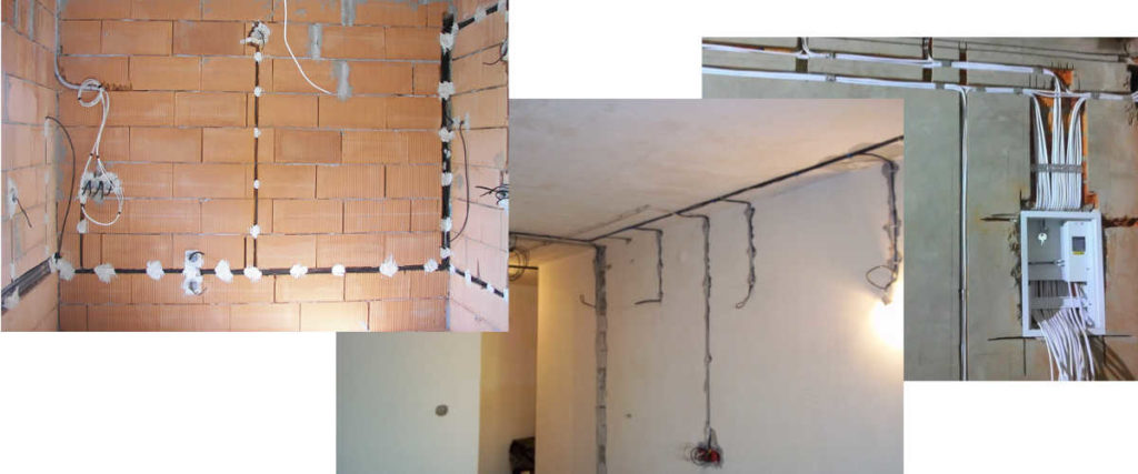 Изображения примеров скрытой внутренней электропроводки в помещениях.