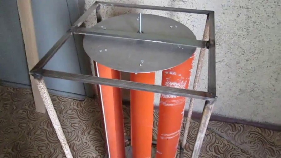Основная часть работ по сборке теплообменника сводится к изготовлению металлического корпуса в форме параллелепипеда или цилиндра. Отверстия для поступления воздуха устраиваются снизу, а вверху устанавливается подставка с емкостью под воду.
