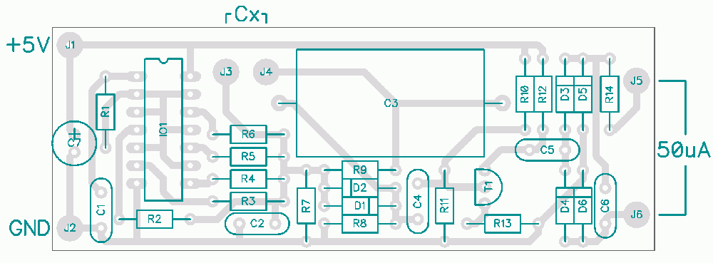 К выводам X3 и X4 через резистор R14 подключается микроамперметр со шкалой полного отклонения около 50мкA. Значение, отображаемое на индикаторе в основном пропорционально значению ESR конденсатора. Конечно, необходимо путем калибровки связать значение ESR и емкость нового конденсатора, чтобы можно было обнаружить несоответствие с неисправным конденсатором.