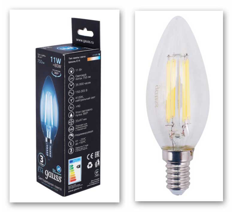 - Фималентные лед лампы подойдут для установки в самых разных осветительных приборах. Так например модели с цоколем Е27 станут идеальной заменой для простых стандартных лампочек, а лампа филаментная е14 идеально подойдет светильникам с малым цоколем.