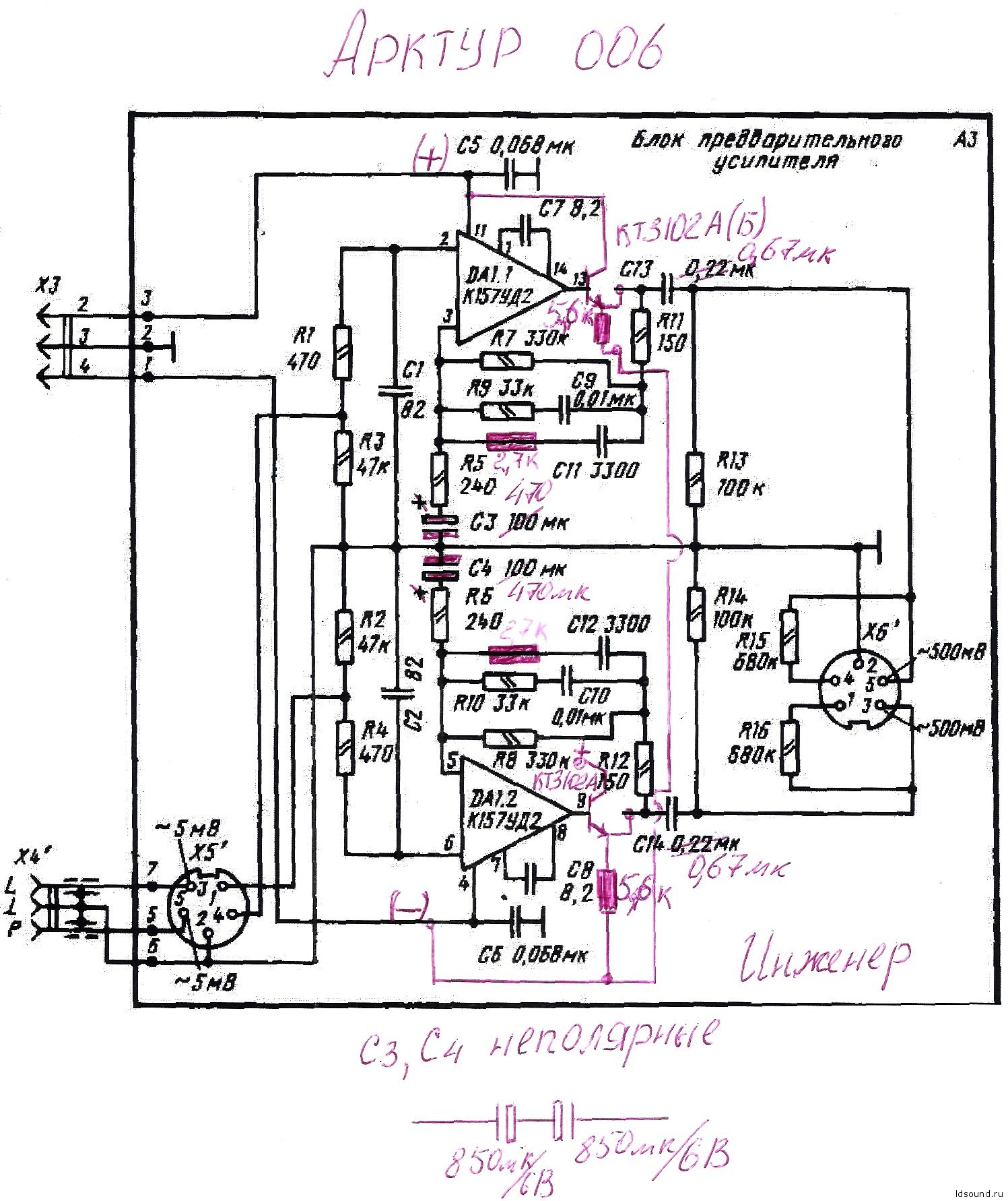 Случайно в мои руки попал проигрыватель пластинок «Арктур-006-стерео». Поэтому появилась острая нужда в фонокорректоре. На просторах Интернета наткнулся на схему А. Бокарёва
