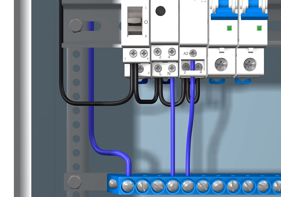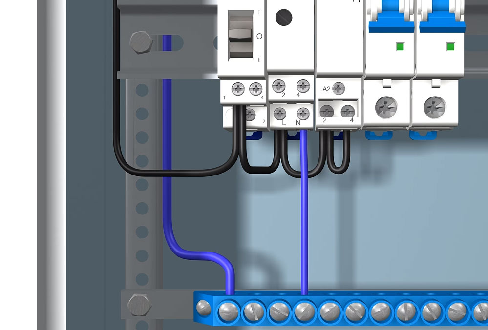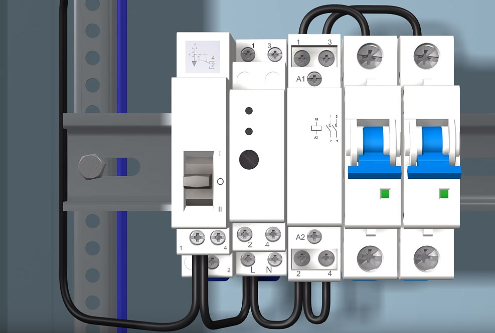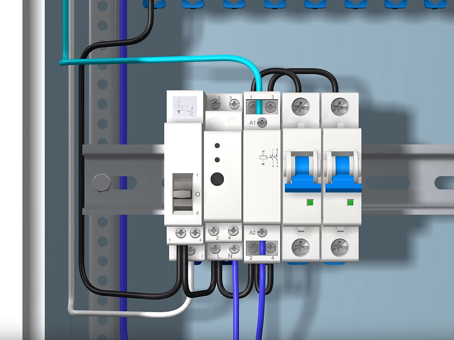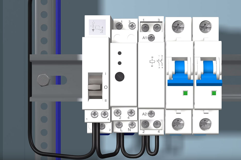 На DIN рейке по порядку в один ряд выставляете всю необходимую автоматику: