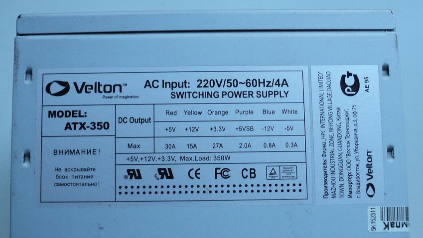 В-третьих, на блоке питания вы можете найти наклейку, на которой будет обозначен максимальный ток, на который рассчитан блок питания, по каждому напряжению.
