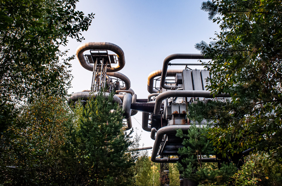 Установка постоянного напряжения, которую часто сравнивают с моделью ДНК. Увы, конструкция плохо сохранилась и покрылась ржавчиной. О том, какие здесь раньше проходили испытания, ничего не известно.