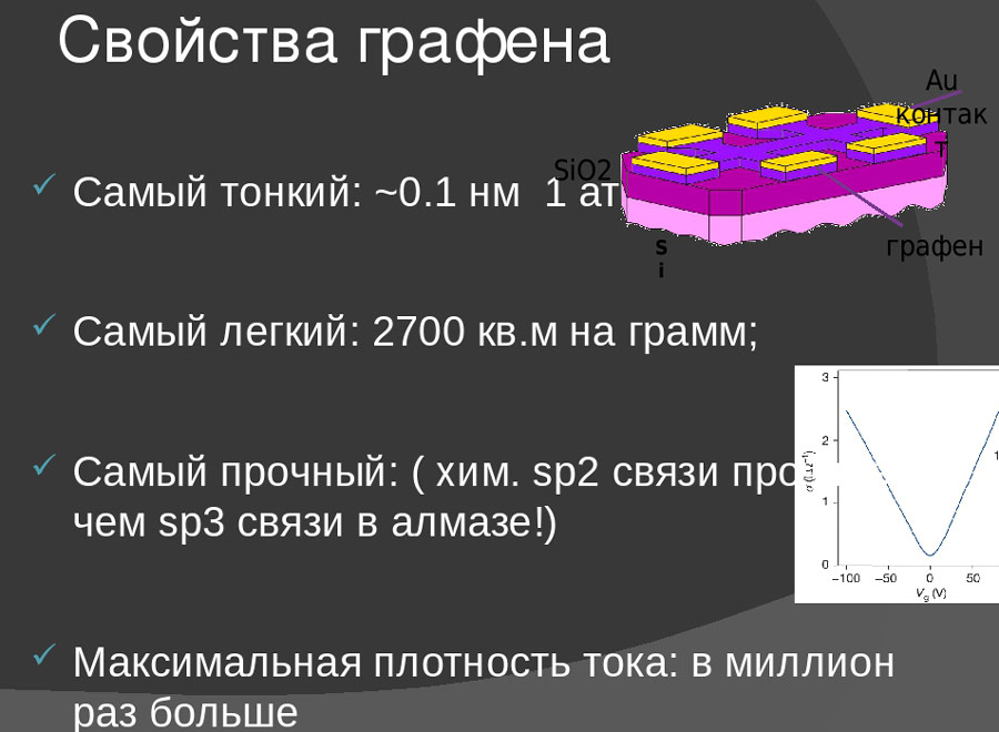 - проводимость выше, чем у любого доступного сейчас полупроводника;
