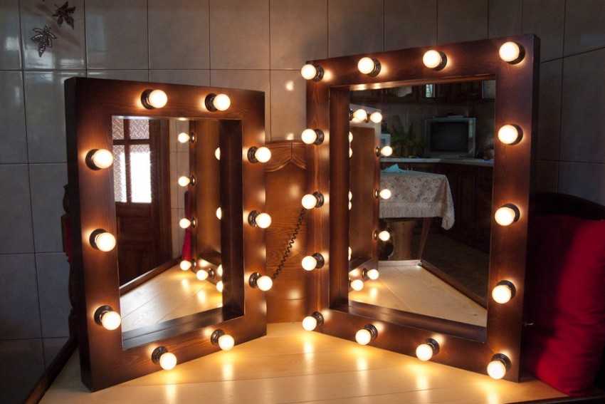 Хлопоты по постановке света для наложения косметики более умозрительные, а физические сводятся к закупкам комплектующих. Но вот раму для зеркала с подсветкой нужно делать самому, иначе к чему весь этот сыр-бор? Ее конструкцию традиционно копируют с театральных гримировочных зеркал; патроны ламп утапливаются в раму по венчик. Но физических, технических, физиологических и др. объективных причин этому нет. Есть всего одна, и скорее историческая – гастроли.