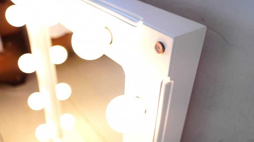 - Легко сделать своими руками. Самостоятельное изготовление гримерного зеркала не займет много времени. К тому же изделия с подсветкой своими руками обойдутся значительно дешевле, так как стоимость материалов намного меньше готового изделия.