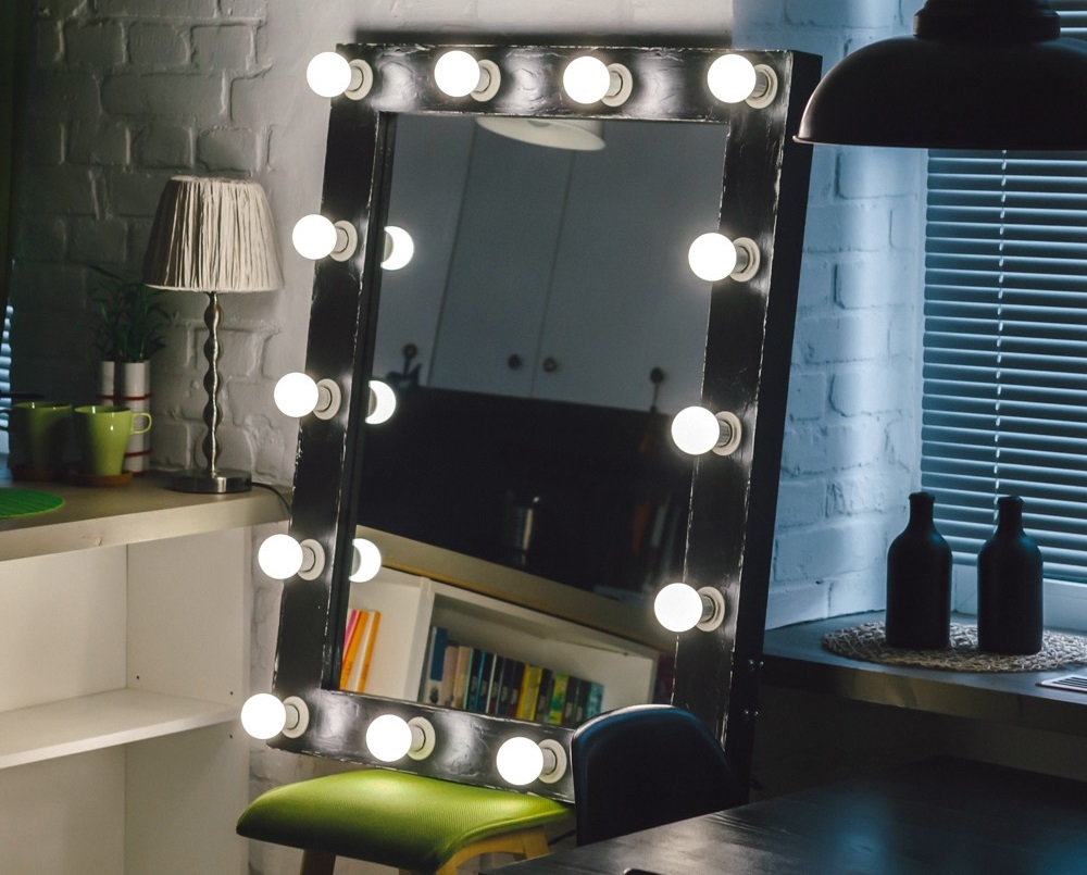 Зеркала с лампочками предоставляют возможность увидеть на лице даже такие мелкие недостатки, как пигментные пятна, прыщики, раскрытые поры. Благодаря этому можно точно подобрать основу под тон кожи и нанести ее ровным слоем, правильно выбрать цвет пудры.