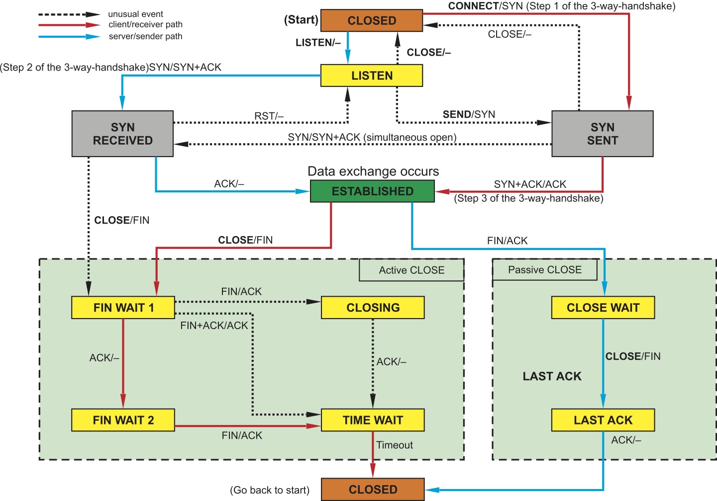 Рис. 2. Граф процессов и состояний стека протоколов TCP/IP