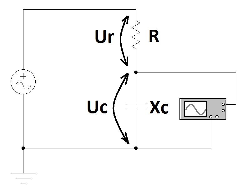 Реактивное сопротивление имеет вполне исчисляемое значение. Его можно измерить с помощью осциллографа, генератора и постоянного резистора. Для этого потребуется собрать схему. В ней конденсатор образует с резистором делитель напряжения. С помощью осциллографа будет измеряться потенциал, который образуется на выводах ёмкости.