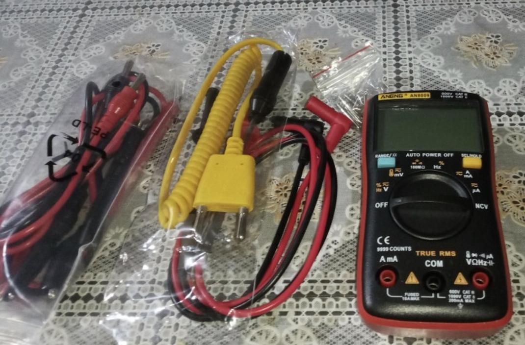 Очень приличный бюджетный девайс с серьезными возможностями. Тестер очень компактный и легкий, его удобно переносить в прилагаемой сумке. Комплектация включает 8 пар разных насадок (щупы, крокодилы), датчик температуры и инструкцию.