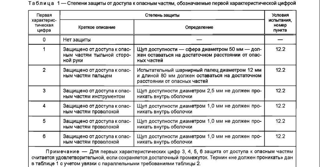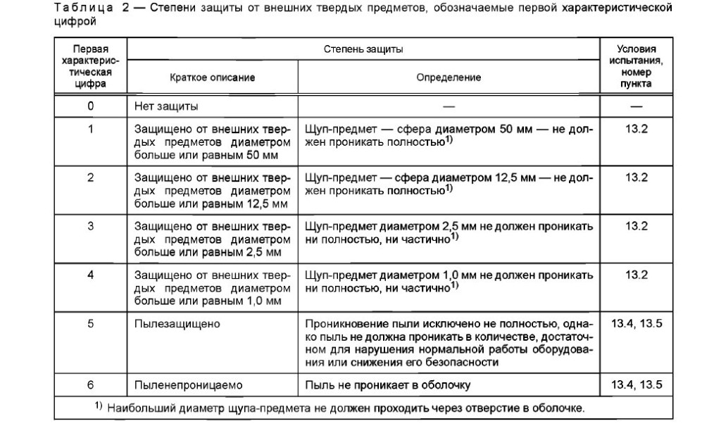 Для конкретизации этих данных и расшифровки степени защиты следует обратиться к таблице, согласно которой речь идет о конкретном образце техники, который: