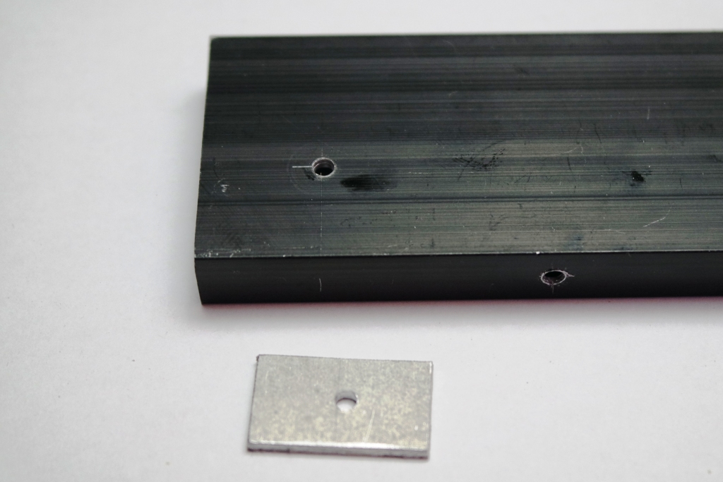 Сверлим радиатор для крепления транзисторов, делаем прижимную планку, а снизу делаем отверстие сверлом на 2,5мм и метчиком на 3 нарезаем резьбу для крепления радиатора: