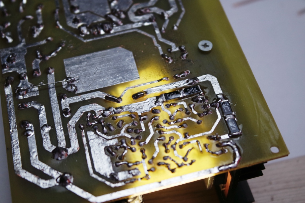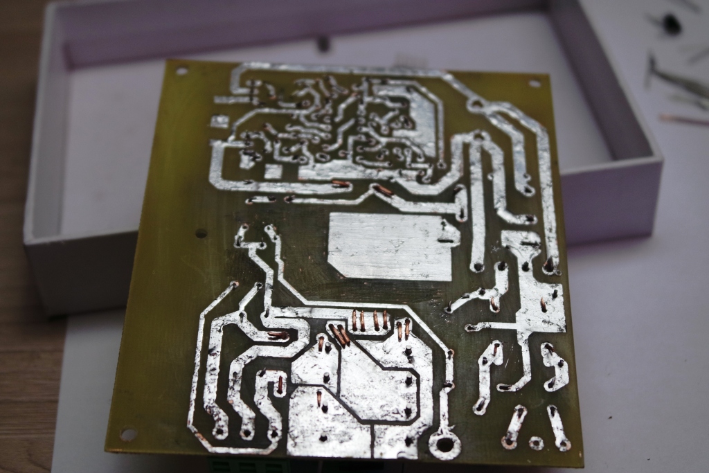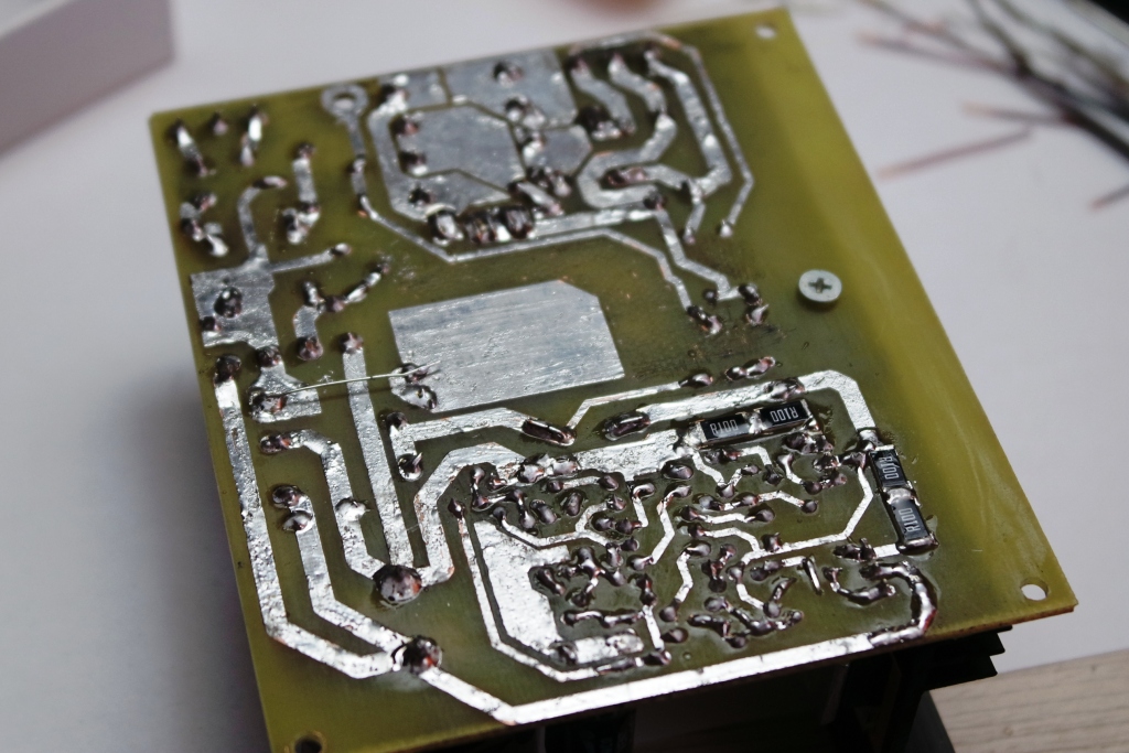 Рис. 4. Готовая печатная плата для импульсного источника питания (вид со стороны соединений).