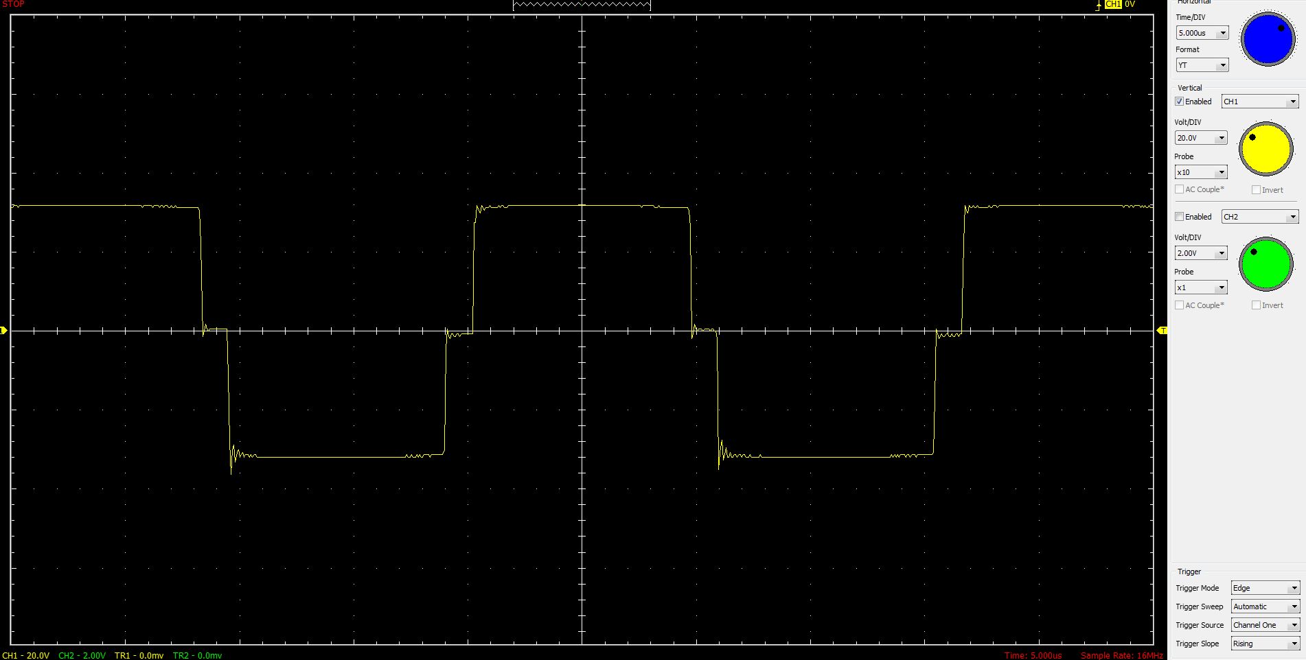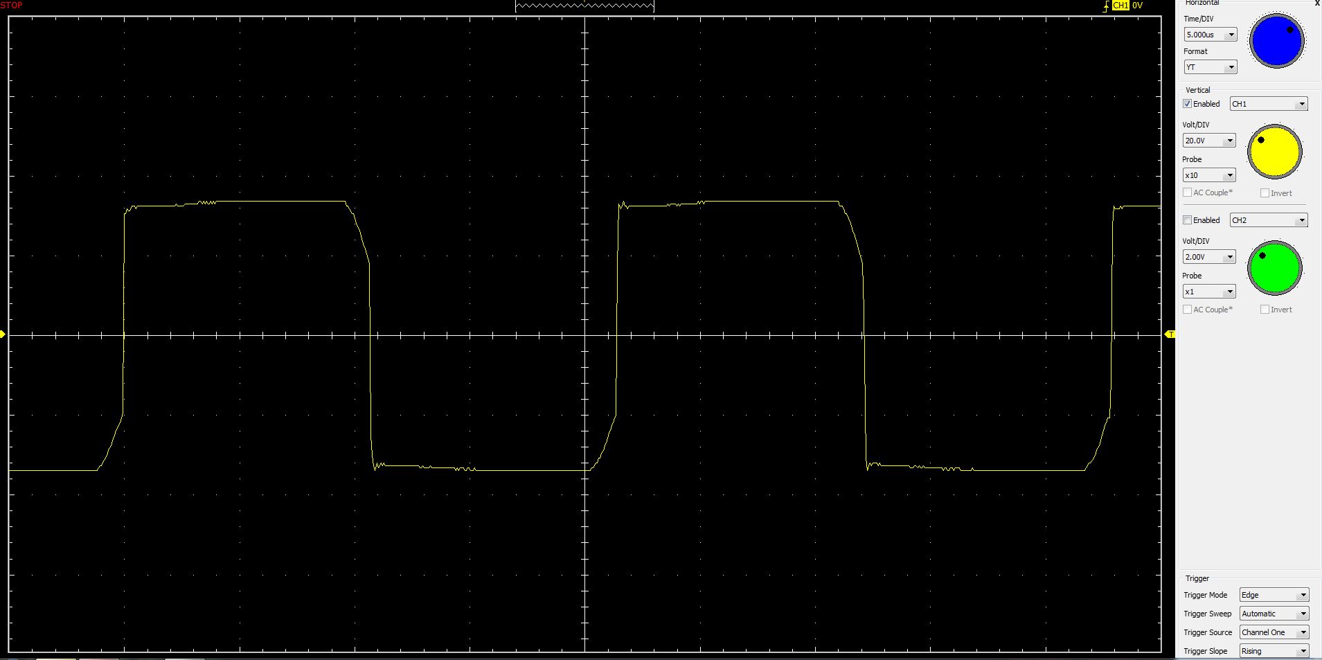 Форма сигнала на затворе полевика, питание 12в ( для безопасности).