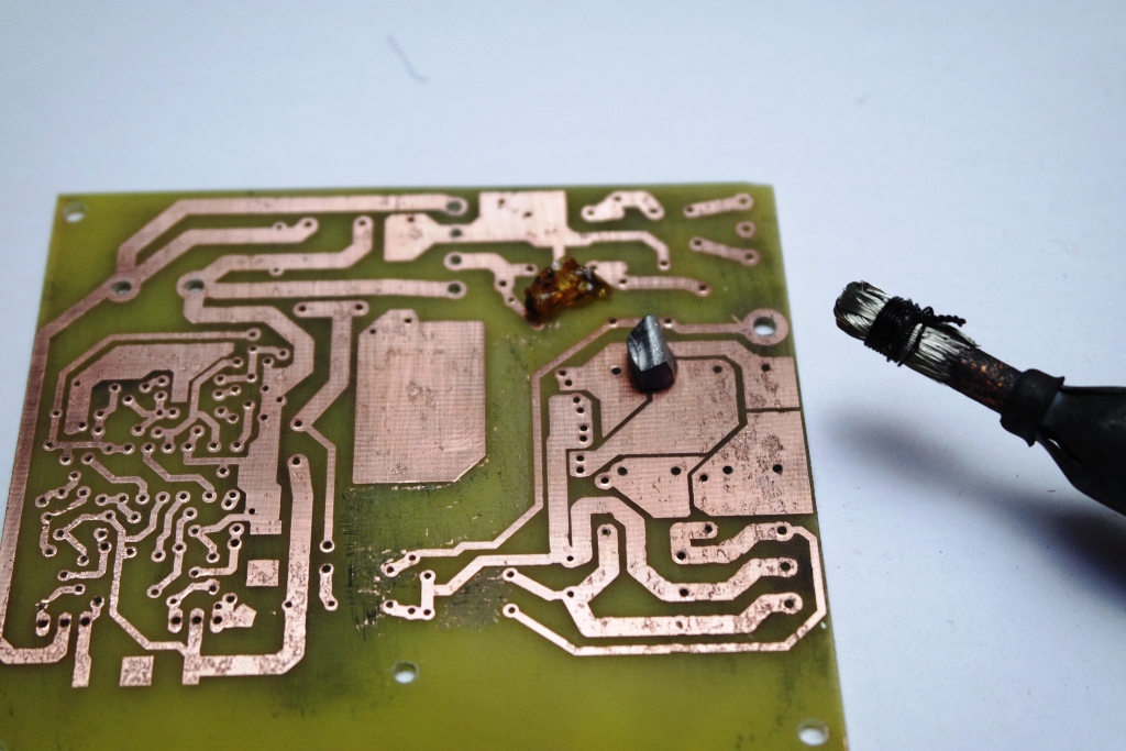 Проверка на «сопли» с помощью подсветки платы фонариком.