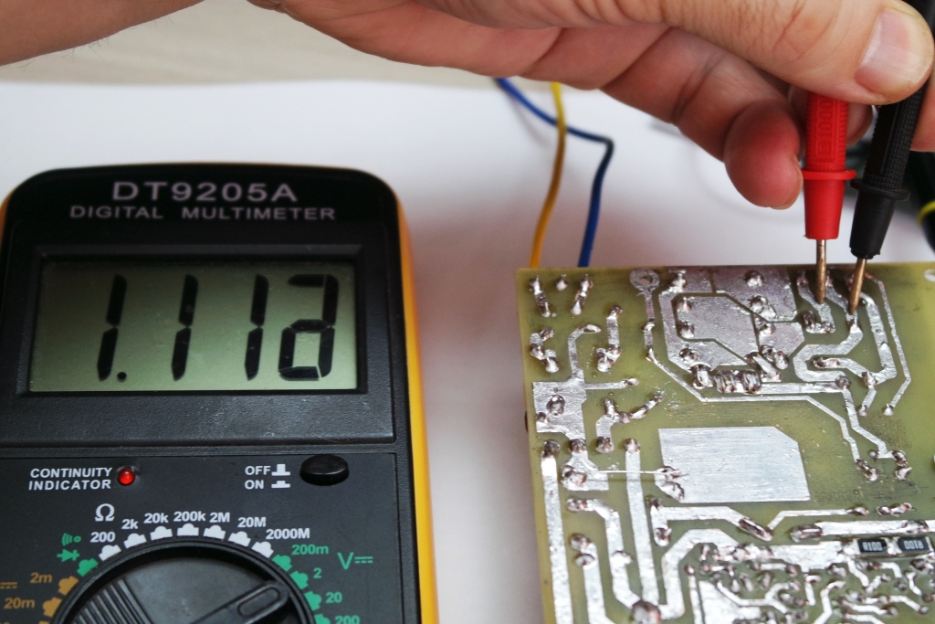 На вход вместо 230в подаем 12в ( +и- обозначены на плате) на выходе должно появится небольшое постоянное напряжение: