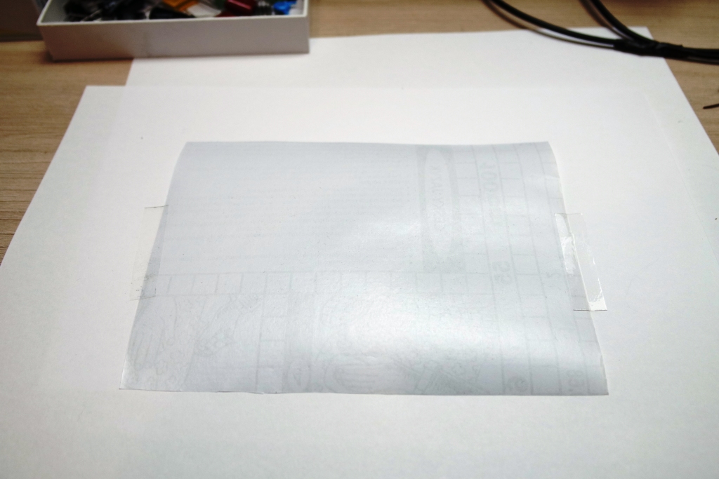 Обезжириваем медь и кладем подложку рисунком вверх на полумягкую поверхность, например книгу: