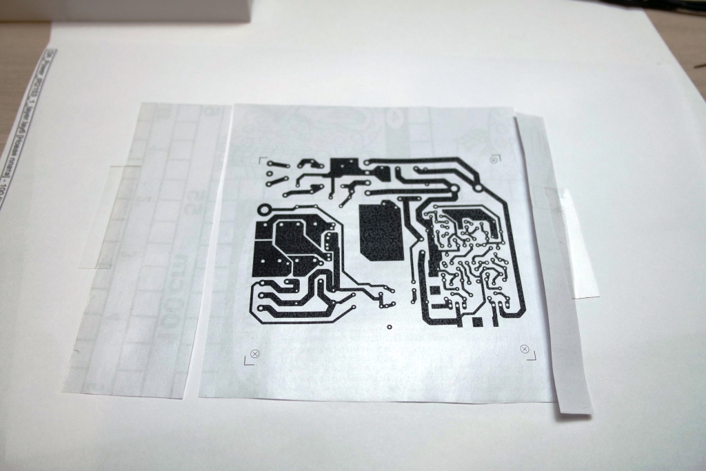 Кладем текстолит медью вниз и выравниваем по отметкам: