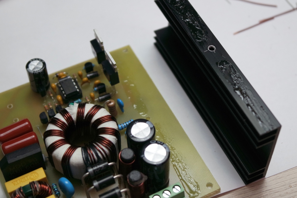 Прижимаем транзисторы к радиатору изолировав их с помощью теплопроводных прокладок: