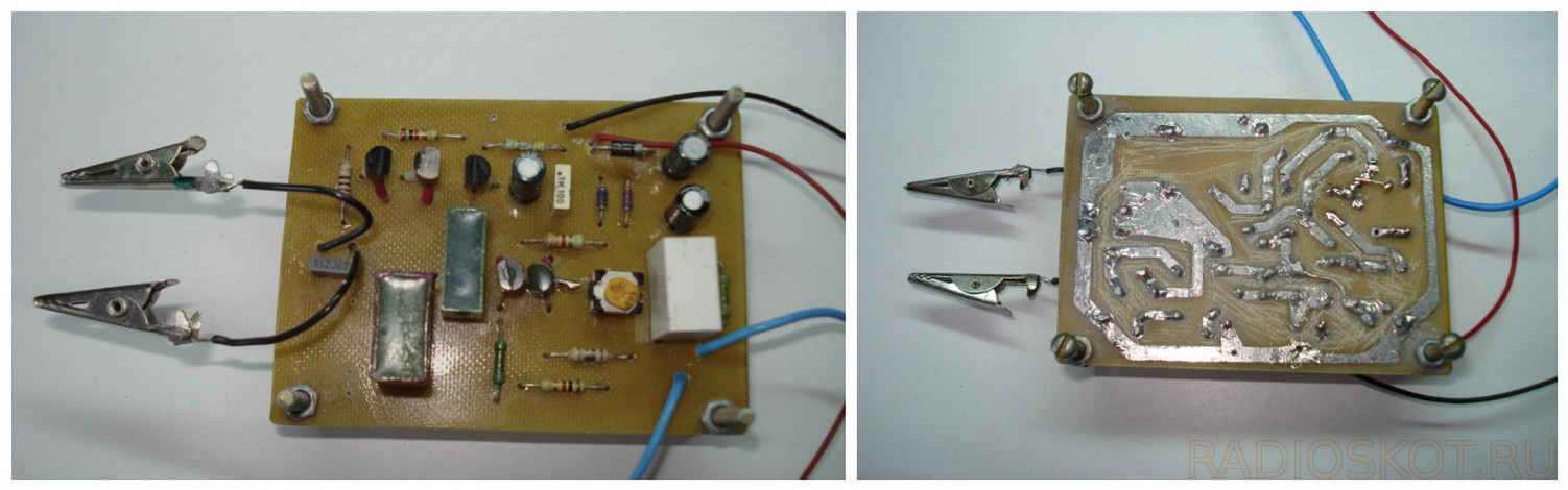 Проводу к «бананам» и «крокодилам» лучше взять короче, что бы уменьшить влияние их собственной индуктивности на показания замеров. В месте припаивания проводов к плате, соединение стоит дополнительно зафиксировать каплей термоклея.